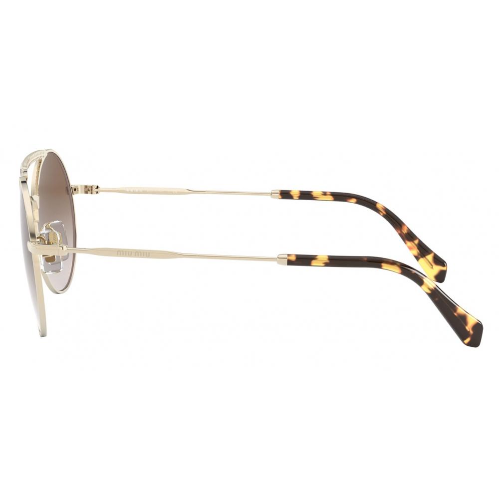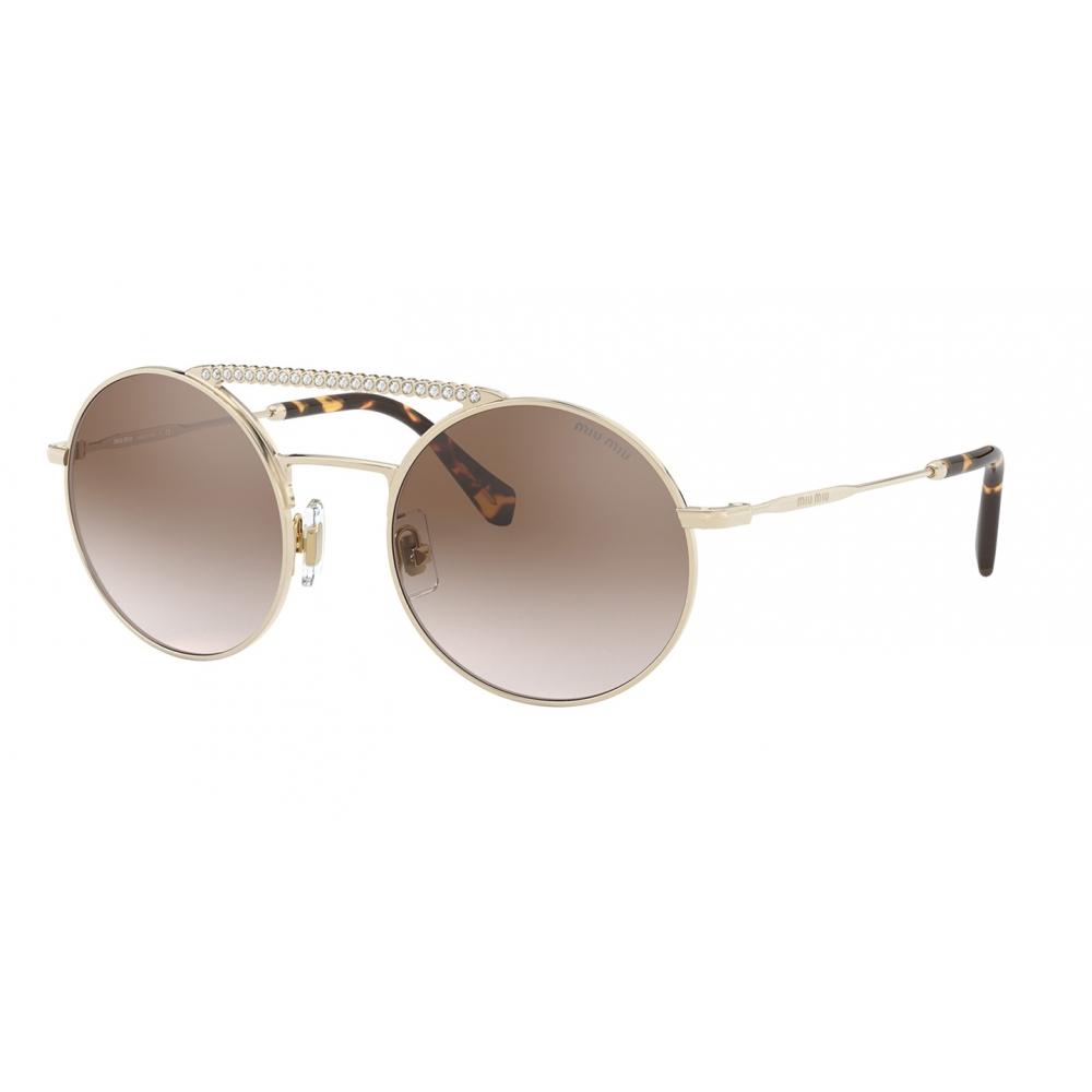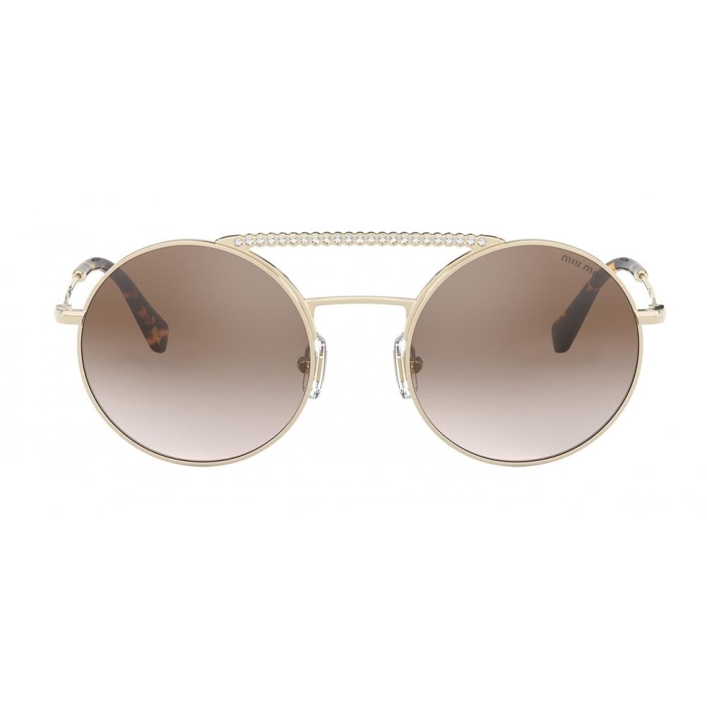 MIU MIU 52VS 50 ZVN/QZ9 – نظارة شمسية نسائية دائرية بإطار ذهبي وعدسات بنية متدرجة (فئة 3)