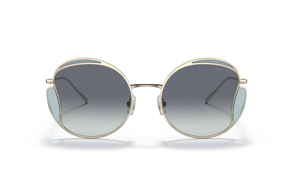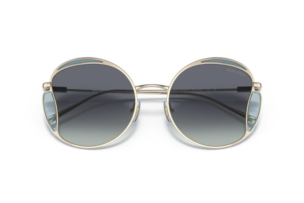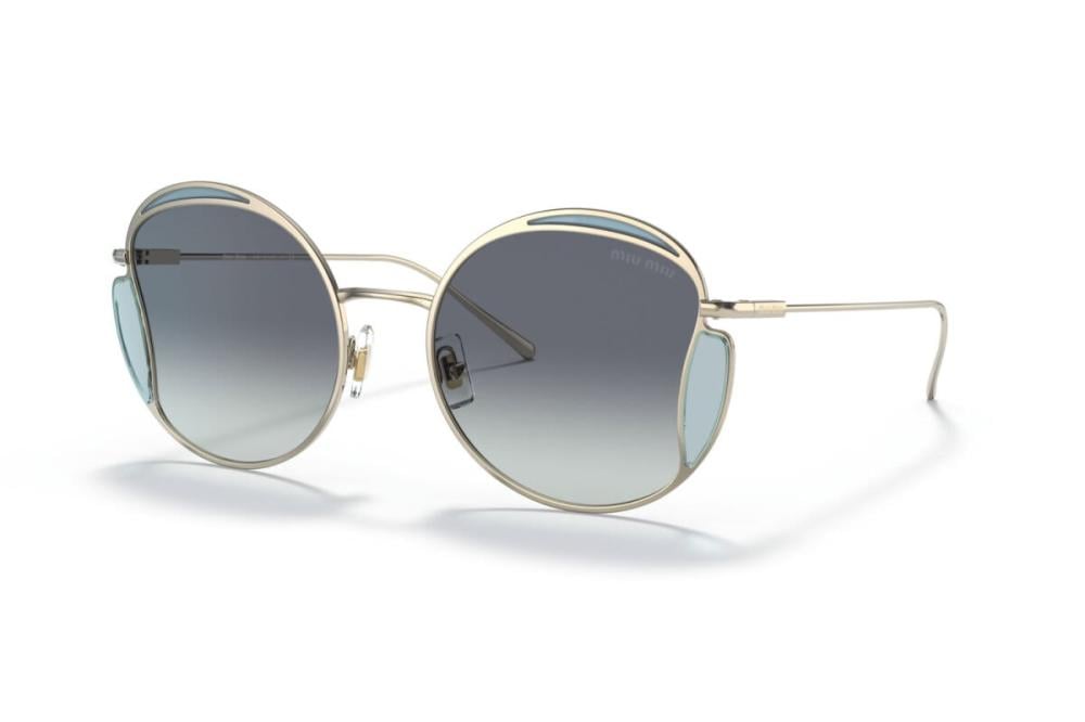 MIU MIU MU 56XS ZVN/05N 54 – نظارة شمسية نسائية بإطار معدني ذهبي فاتح وعدسات زرقاء متدرجة