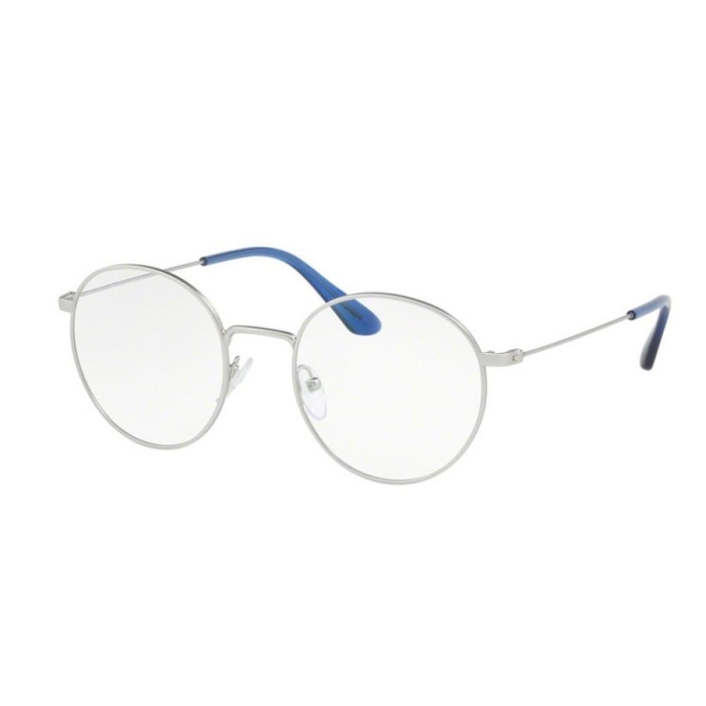 نظارات برادا PR 64TV للرجال تتميز بتصميم عصري وأنيق مع إطار معدني فضي غير لامع. العدسات الشفافة من نوع ديمو لينس يمكن تعديلها لتناسب احتياجاتك البصرية. تتميز النظارات بجسر بعرض 20 مم وطول الأذرع 140 مم، مما يوفر راحة وملاءمة ممتازة. تصميم العدسات الفانتوس يضيف لمسة من الأناقة والتميز.