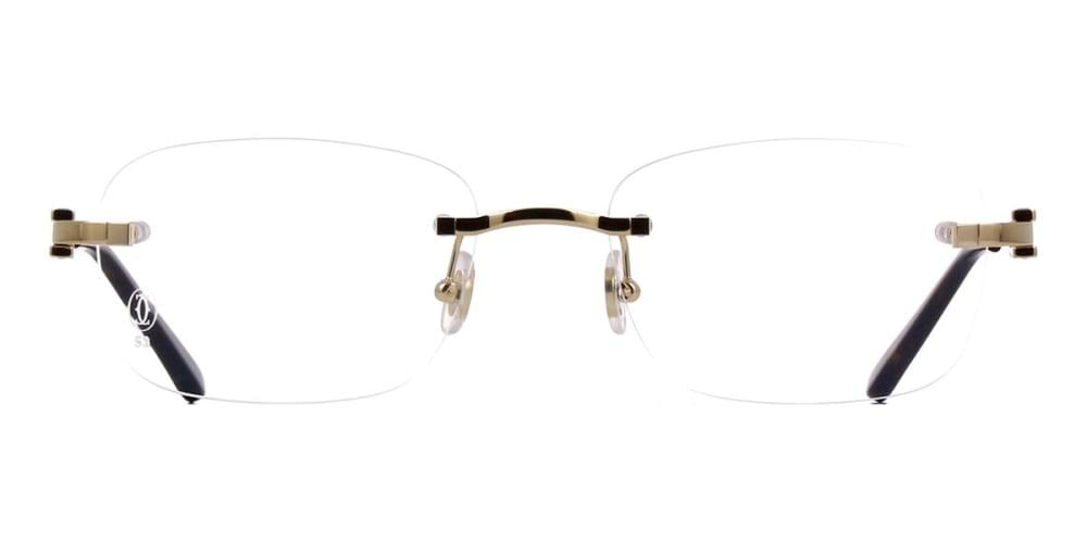 تأتي هذه النظارات البصرية المربعة من كارتييه في إطار ذهبي.