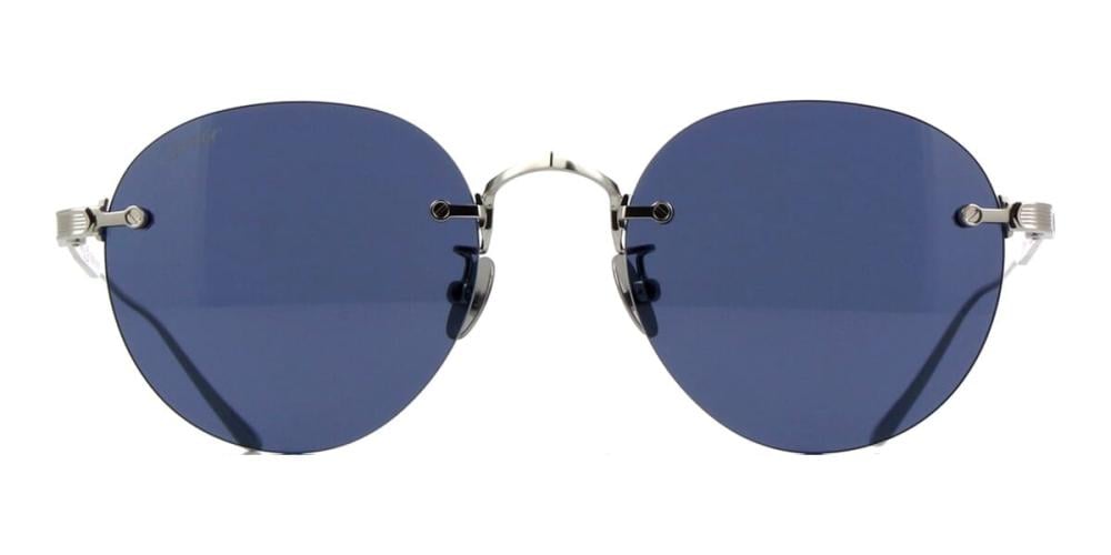 تأتي هذه النظارات الشمسية المستديرة من كارتييه بإطار ذهبي لامع مع عدسات سوداء.