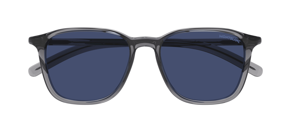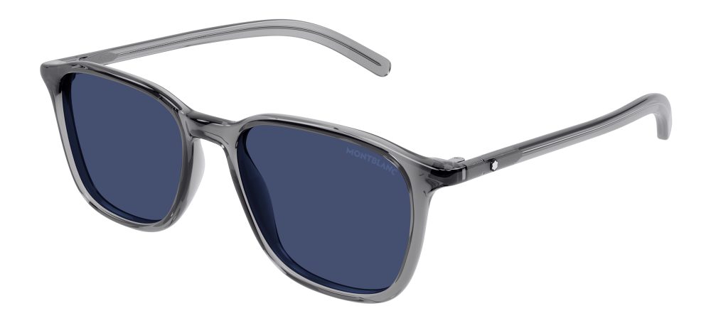 تأتي هذه النظارة الشمسية المستديرة من Mont Blanc بإطار رمادي وعدسات زرقاء.