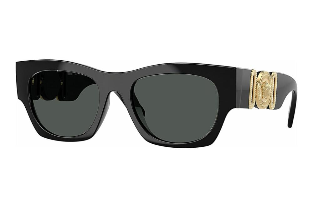 تأتي هذه النظارة الشمسية المستطيلة من Versace بإطار أسود وعدسات داكنة.