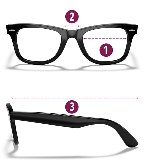 يتم التعبير عن قياسات حجم النظارات بشكل أساسي بسلسلة من 3 أرقام.