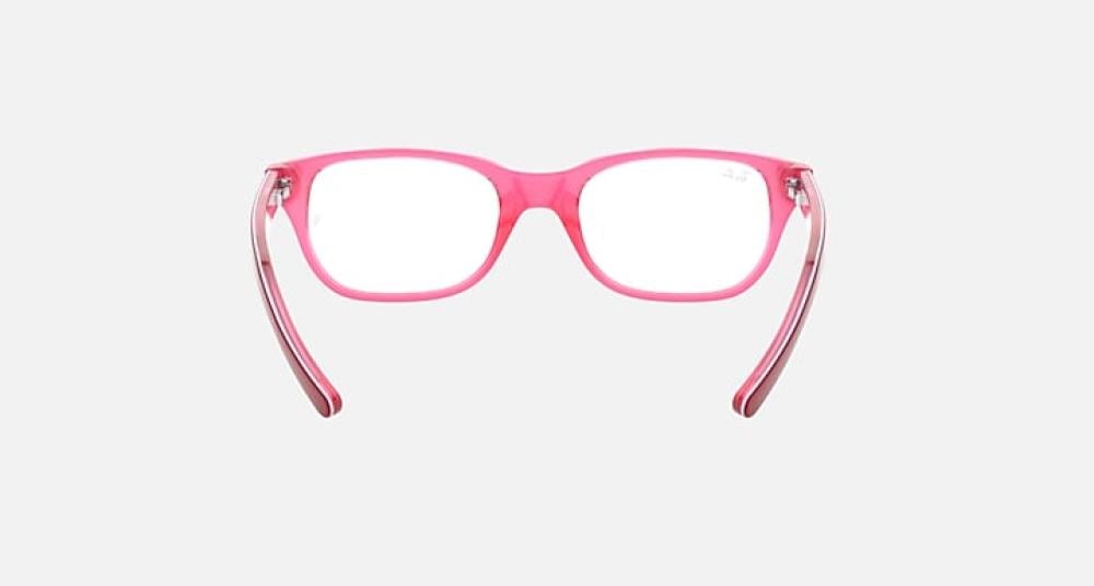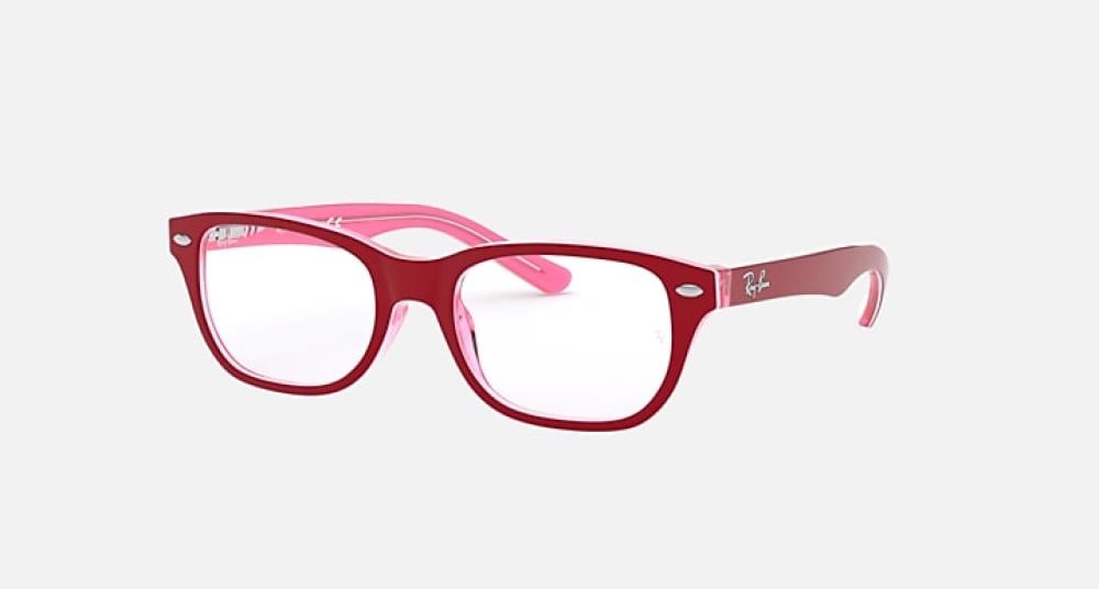 Let your child shine with the stylish Ray-Ban RB1555 eyeglasses, featuring a modern square frame design. The polished Bordeaux on pink acetate frame is paired with Bordeaux on transparent pink temples, offering a playful and elegant look. Designed for superior comfort, these glasses feature a high bridge fit and narrow sizing.