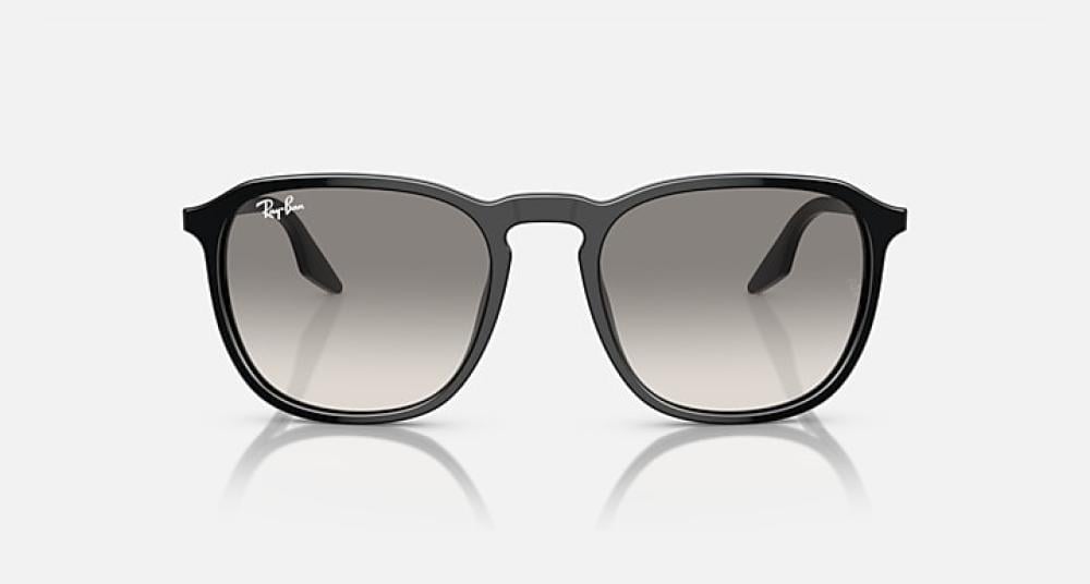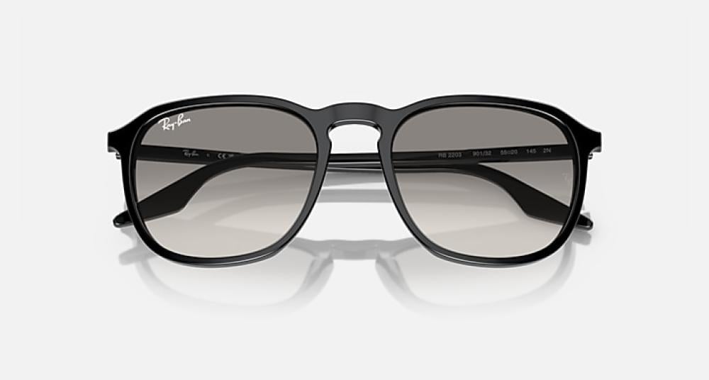 The Ray-Ban RB2203 901/32 sunglasses feature a modern square design that exudes elegance and sophistication. The polished black acetate frame and matching black temples offer a sleek and contemporary look. The light grey gradient lenses provide comfortable vision and sun protection.