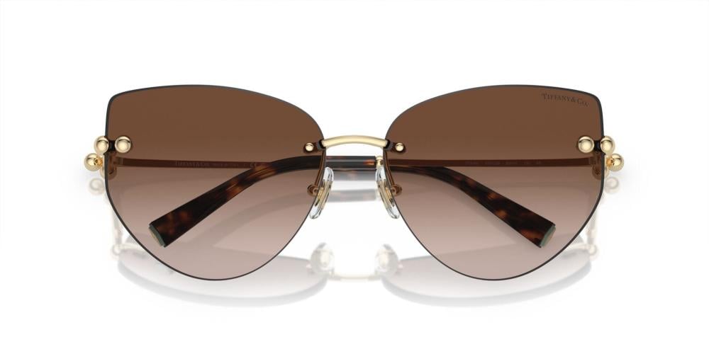 Elevate your style with the Tiffany TF3096 sunglasses, designed for women who seek sophistication and elegance. The full-rim butterfly-shaped frame in pale gold exudes luxury and charm. The brown gradient lenses offer comfortable sun protection with a chic touch. Made in Italy, these sunglasses are crafted with exceptional attention to quality and detail.