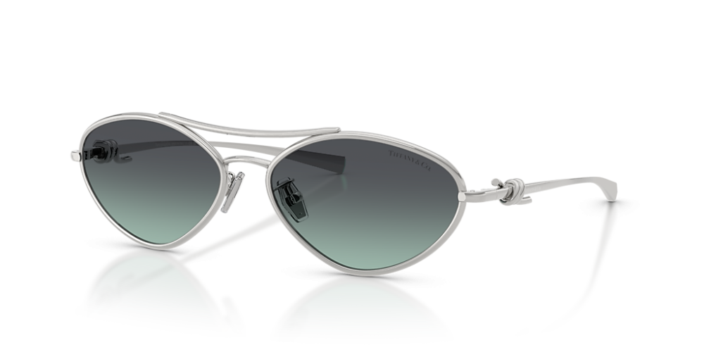 Luxury sunglasses from Tiffany & Co. featuring a sleek, geometric metal design inspired by modern elegance and classic touches.