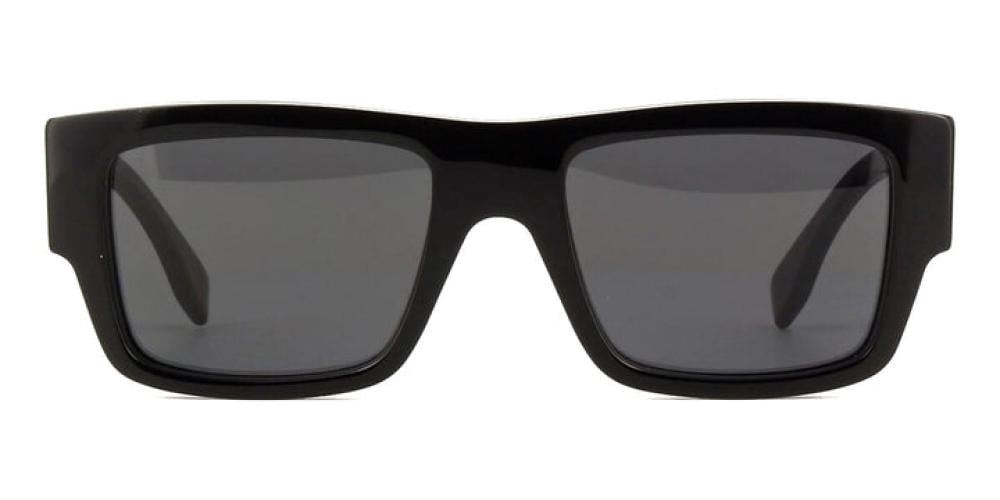 This square Fendi sunglass comes in a shiny black frame with grey lenses.