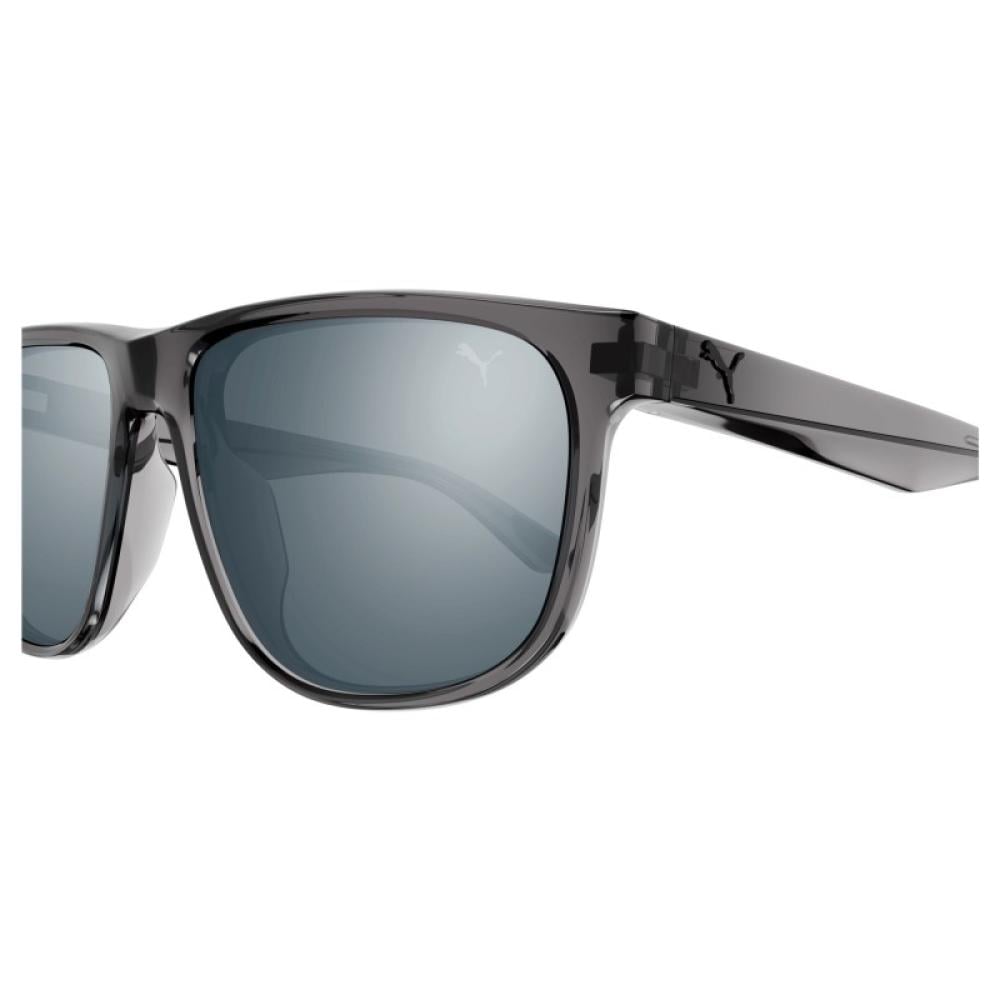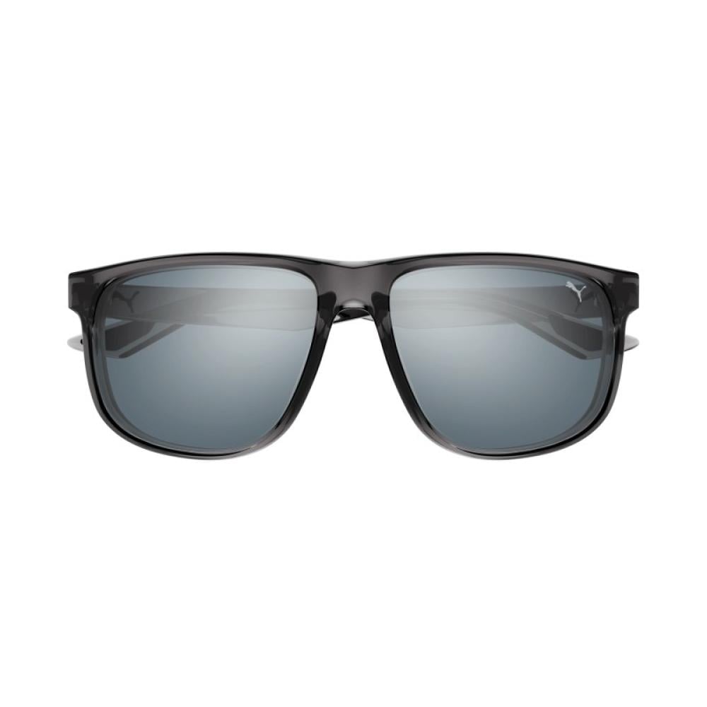 Designed for men, the Puma PU0441S sunglasses feature a design inspired by round, oval, and panthos shapes, adding a touch of elegance and sophistication. The gray plastic frame ensures durability and lightness, while the black polycarbonate lenses offer optimal sun protection with clear, comfortable vision.