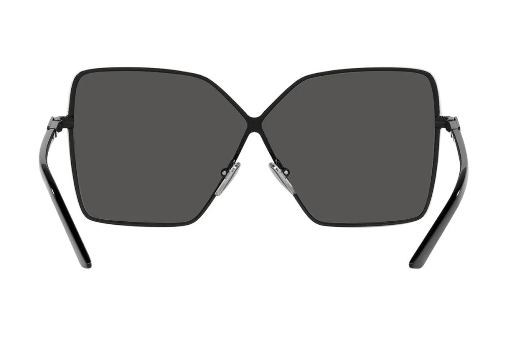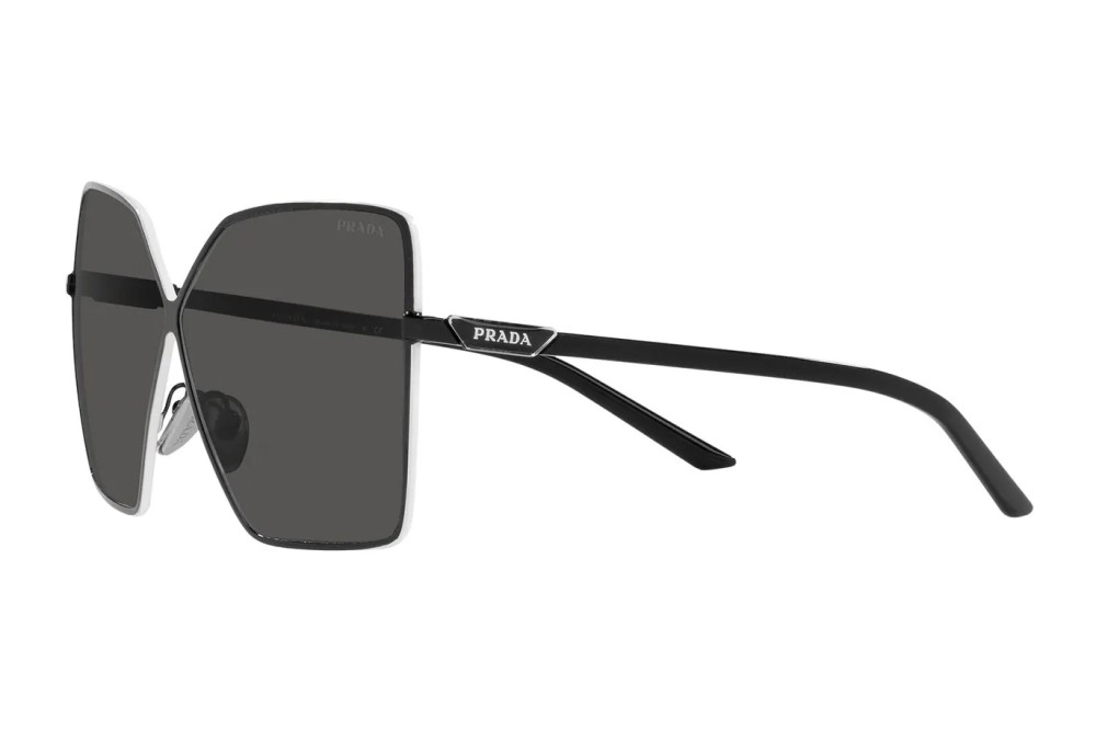 This square Prada sunglass comes in a black frame with dark gray lenses.