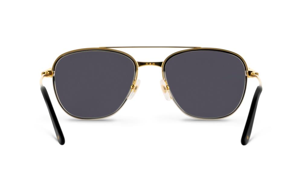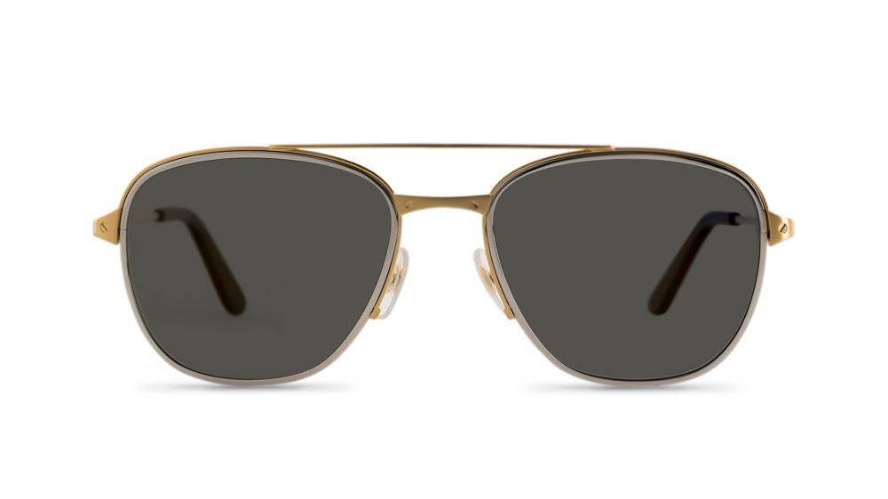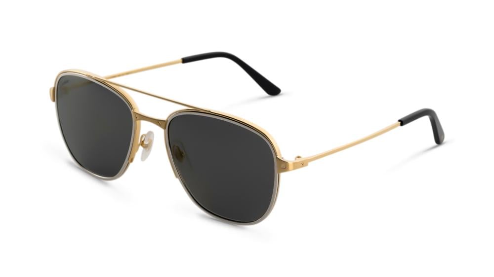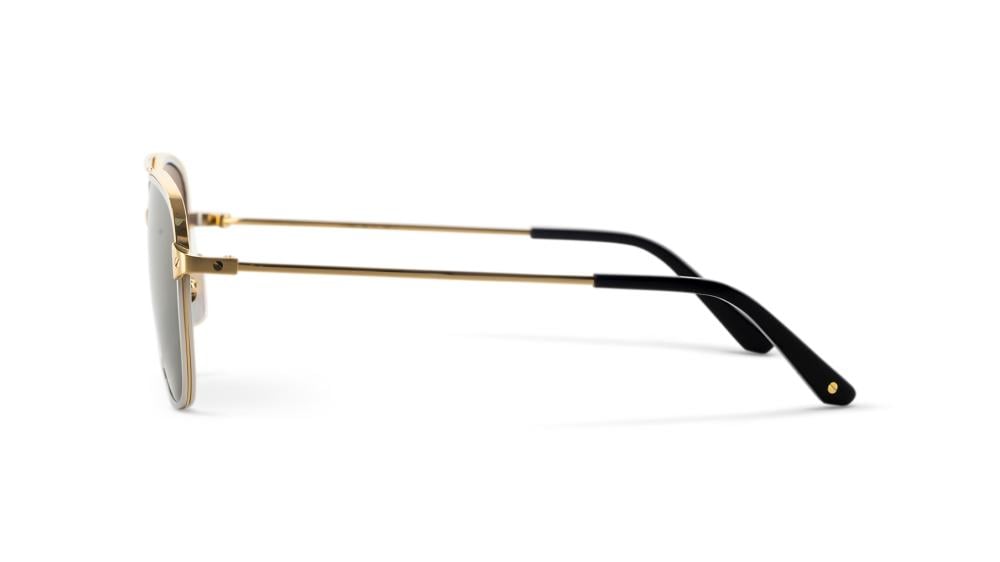 تأتي نظارة أفياتور كارتييه الشمسية هذه بإطار ذهبي مع عدسات مستقطبة باللون الرمادي الداكن.